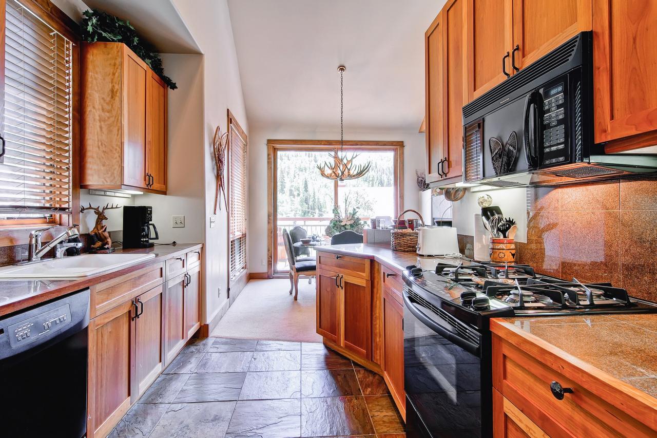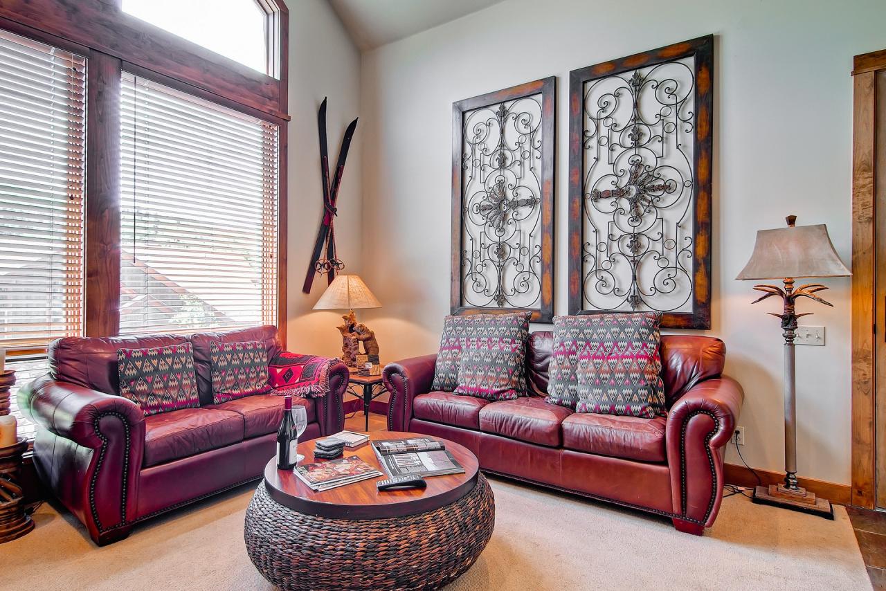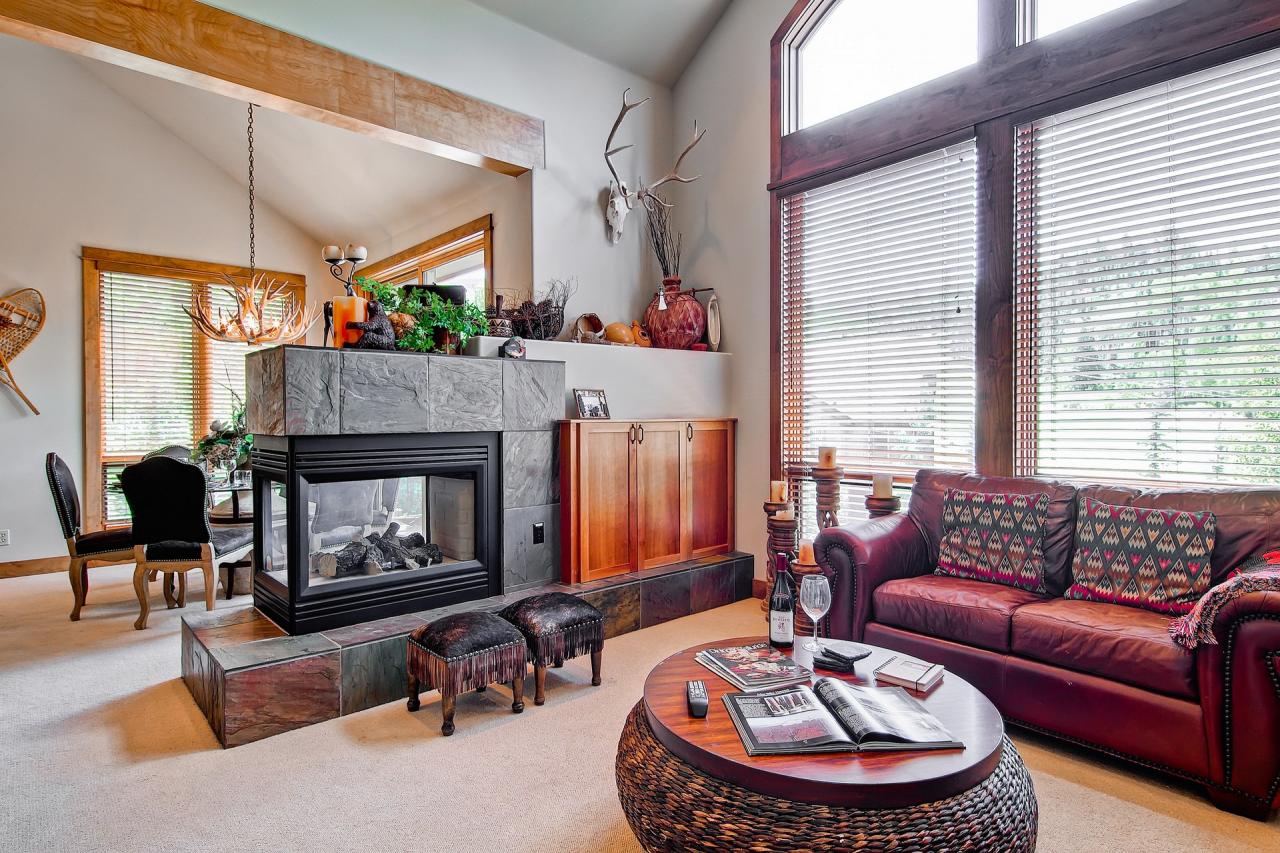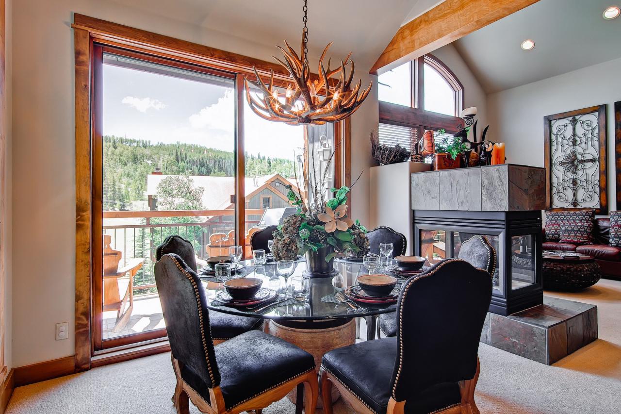 Vaulted ceilings and picture windows offer views of the area that make anyone swoon. The living area is a fantastic place for guest to warm up in front of a fire. Comfortable seating is located around a dual sided fireplace also featuring a flat screen television and Apple TV. On the opposite side of the living area is the dinning room incorporates seating for five. The dining room is easily accessible from the kfully equipped kitchen.