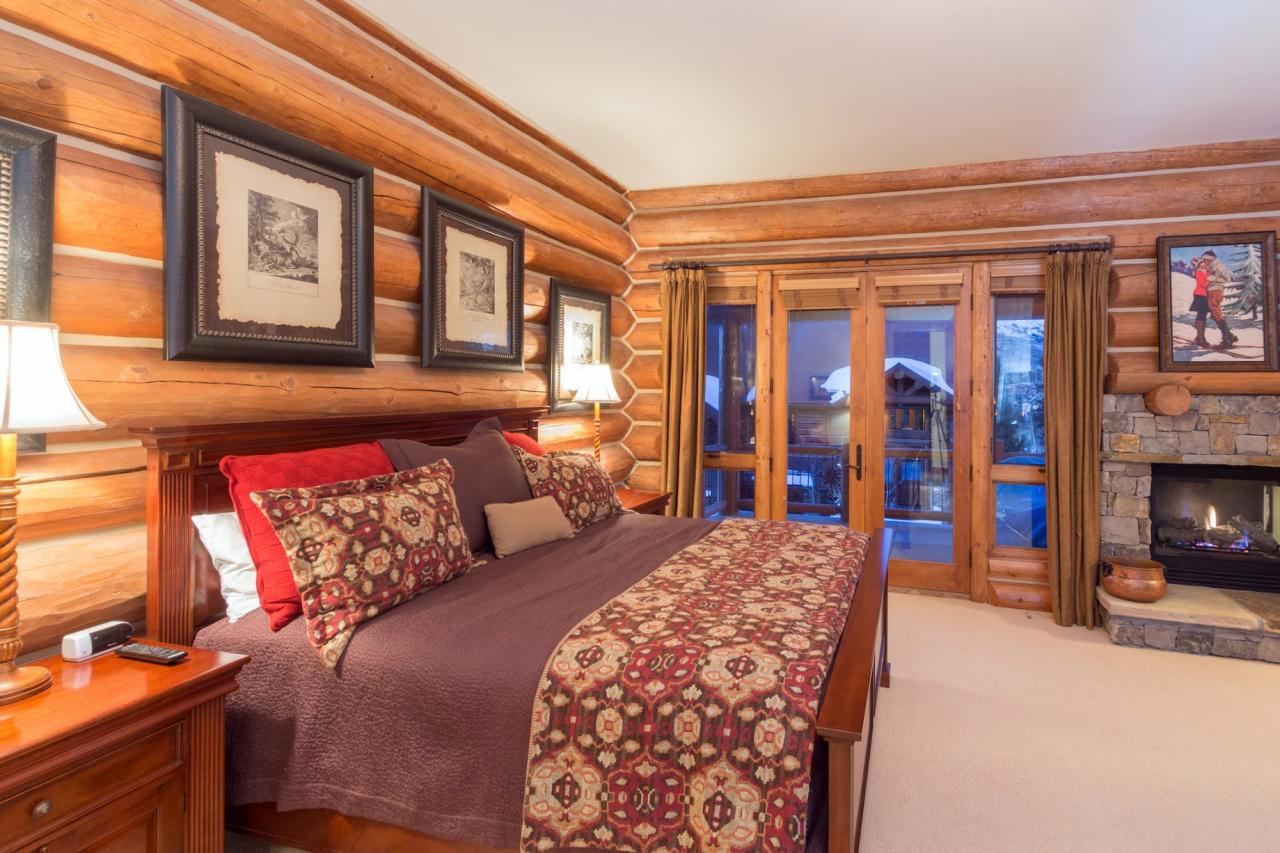 - Bedroom 1: Primary with king bed, en suite bathroom with bathtub and shower, walk-in closet, fireplace, balcony